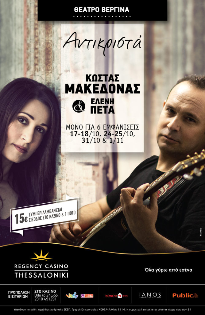 Στις 17 Οκτωβρίου το Θέατρο Βεργίνα του Regency Casino Thessaloniki, υποδέχεται τον Κώστα Μακεδόνα σε ένα υπέροχο μουσικό πρόγραμμα, γεμάτο ελληνικά τραγούδια του χθες και