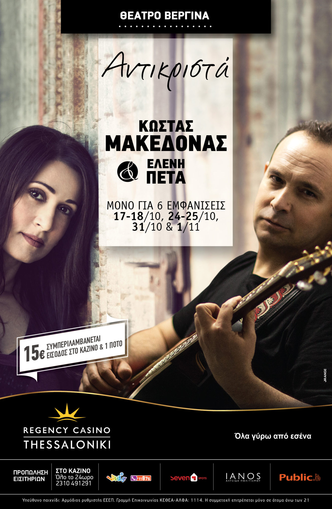 Στις 17 Οκτωβρίου το Θέατρο Βεργίνα του Regency Casino Thessaloniki, υποδέχεται τον Κώστα Μακεδόνα σε ένα υπέροχο μουσικό πρόγραμμα, γεμάτο ελληνικά τραγούδια του χθες και του σήμερα, γραμμένα για την αγάπη και την αμαρτία, τη ζήλεια και τον έρωτα, την πίστη και την προδοσία.