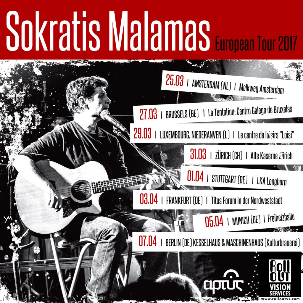 Ο Σωκράτης Μάλαμας, παρέα με την κιθάρα του, ξεκινάει για τη μεγαλύτερη ευρωπαϊκή περιοδεία της καριέρας του με πολλούς σταθμούς,