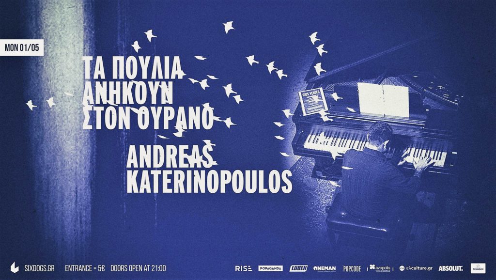 Την Δευτέρα 1η Μαΐου 2017 και ώρα 21.00 ο Ανδρέας Κατερινόπουλος ανεβαίνει στη σκηνή του six d.o.g.s στην Αθήνα για μία και μοναδική γιορτινή live