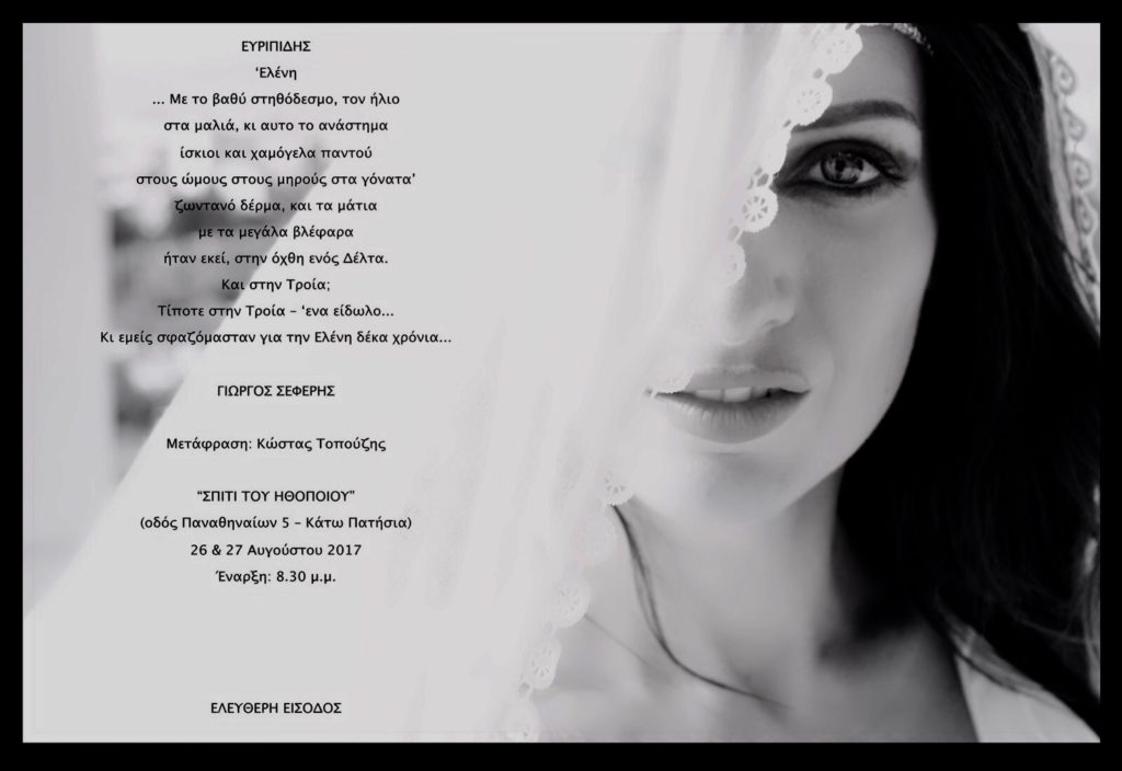 Το κέντρο πολιτισμού «Ελεύθερη Έκφραση» παρουσιάζει το αντιπολεμικό έργο του Ευριπίδη «Ελένη» σε μετάφραση Κώστα Τοπούζη.