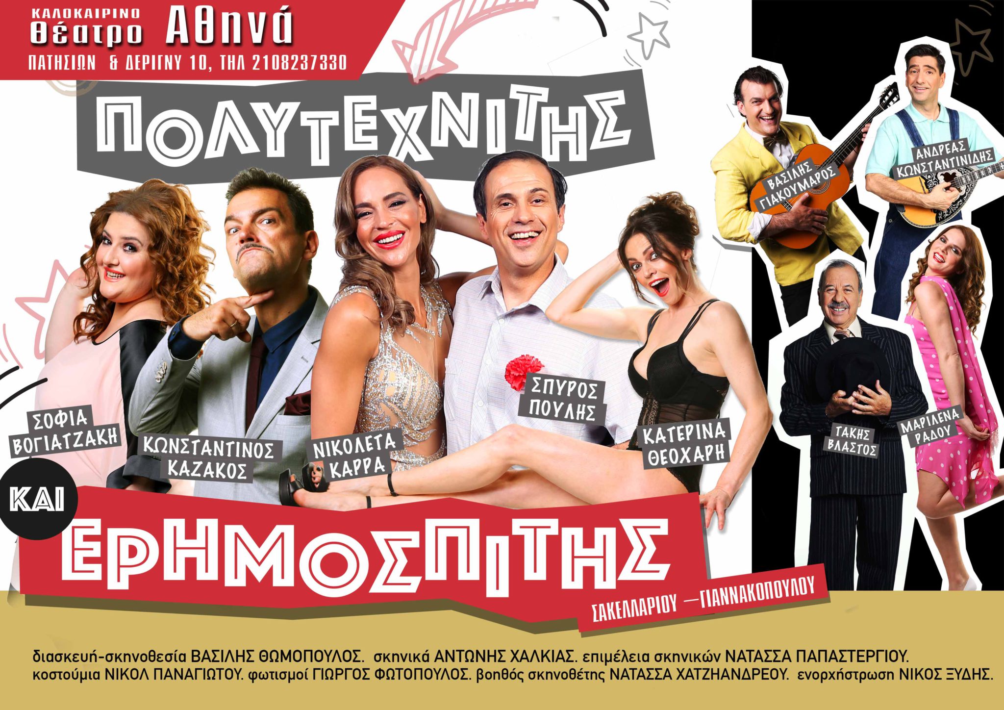 Ο “Πολυτεχνίτης και η Ερημοσπίτης” θα κάνει πρεμιέρα στις 30 Μαίου και θα παίζεται όλο το καλοκαίρι, από ένα ταλαντούχο θίασο που θα απαρτίζεται από αγαπημένους και εκλεκτούς ηθοποιούς. Όπως οι Κωνσταντίνος Καζάκος – Σοφία Βογιατζάκη και η Νικολέτα Καρρά