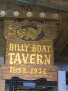 Στα 1934, ο Βασίλης Σκιάνης, ο οποίος στο μεταξύ έγινε Bill Skianis, κατάφερε να μαζέψει 200 δολλάρια και να αγοράζει το εστιατόριο «Lincoln Tavern». Είχε το όνομα ενός εκ των προέδρων των ΗΠΑ. Ο Μπιλ το μετονόμασε σε «Billy Goat Tavern». Goat είναι ο τράγος στα αγγλικά.